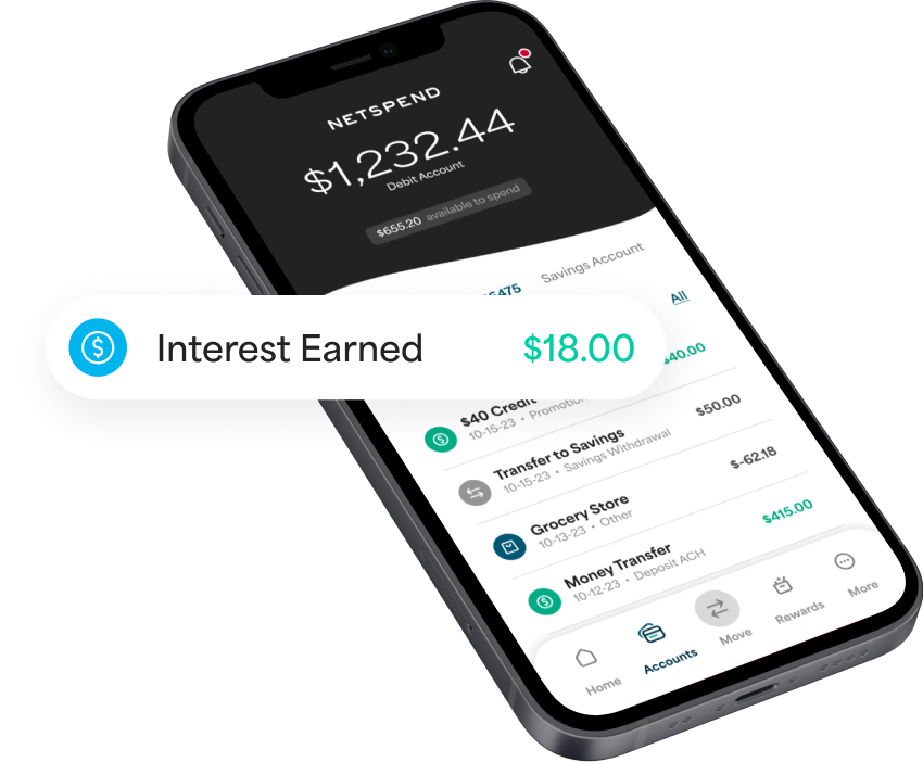 With the Netspend Debit Account, you can open a Savings account and earn up to 6.00% Annual Percentage Yield.
